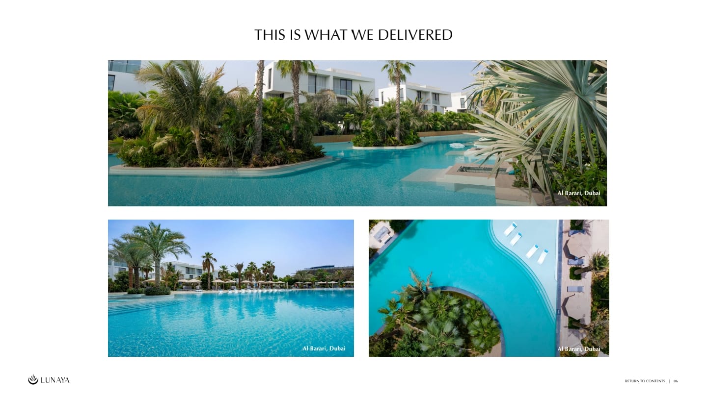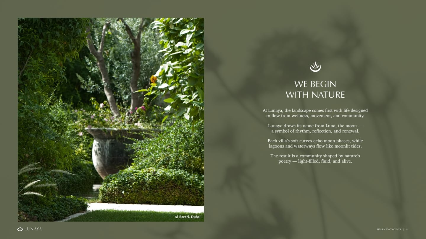 Experience resort-style living in Dubai’s greenest enclave. Lunaya brings an exclusive collection of 4 & 5-bedroom villas and townhouses, wrapped in lush parks, tranquil lagoons, and expansive outdoor spaces – with no back-to-back layouts.
