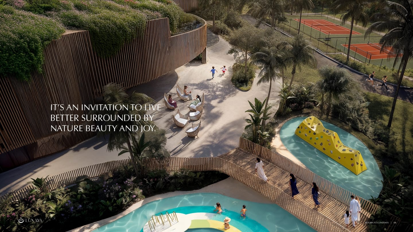 At Lunaya, the landscape comes first with life designed to flow from wellness, movement, and community. Lunaya draws its name from Luna, the moon —a symbol of rhythm, reflection, and renewal. Each villa’s soft curves echo moon phases, while lagoons and waterways flow like moonlit tides. The result is a community shaped by nature’s poetry —light-filled, fluid, and alive